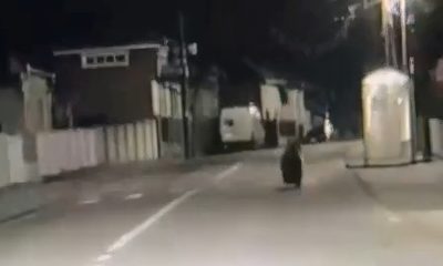 Urs filmat în timp ce se plimba, în cursul nopții trecute, pe strada Blajului din Sântimbru