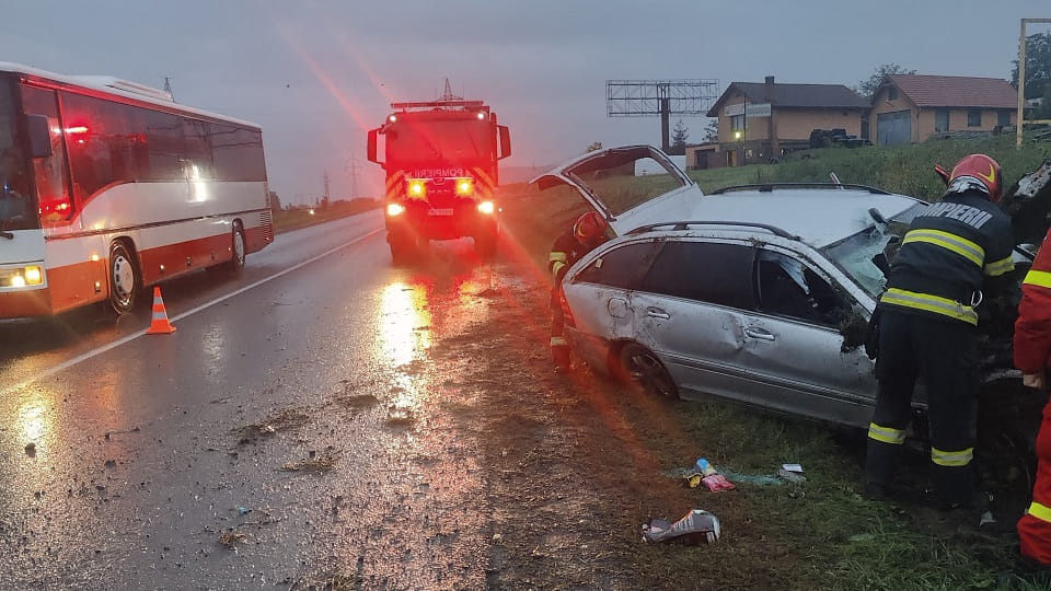 Două persoane au fost rănite, după ce un autoturism a derapat și a ieșit în afara DN 1, la Sântimbru